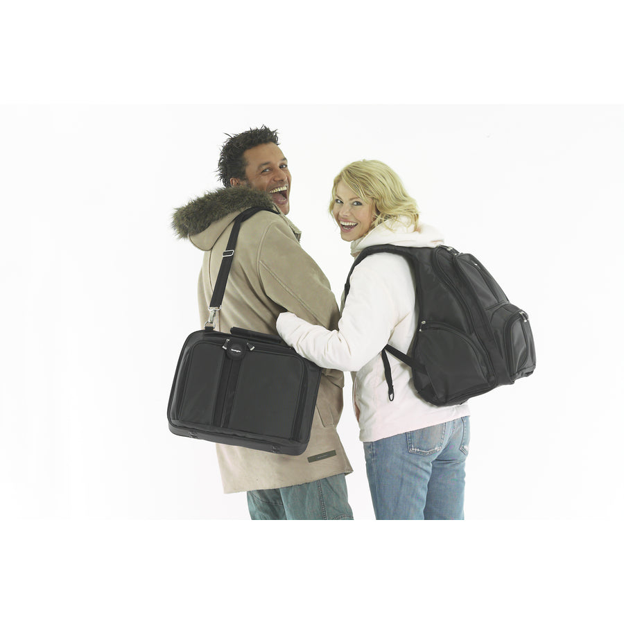 Our recipe for this bag was simple. We took a premium computer carrying case and sent it to a group of ergonomists. We had them look at how the case was used, so that they could think from the bottom-up about how to make the perfect bag. In the process, they added a few new features - like a sculpted pad to bring the weight of the laptop closer in to your centre-of-gravity to help reduce neck and shoulder strain. Or like an elasticized shoulder strap to help reduce shock as you carry the laptop on the road. Or special carrying handles to help reduce hand strain.