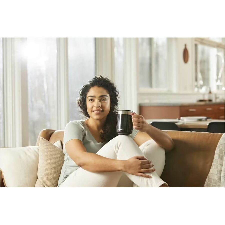 The Stainless Steel Vacuum-Insulated Mug, combines the convenience of having drinks that stay hot or cold for hours with a sophisticated design in eye-catching metallic colours. Drinks stay hot for 5 hours or cold for 15 hours, perfect for sipping coffee while working from home or on a short walk around the neighborhood. The comfortable handle makes drinking your favourite beverages more enjoyable and the splash-proof lid keeps your drink inside the mug when closed. Wherever you are, the non-slip grip base helps prevent the mug from slipping, clanking, or scratching on surfaces so you feel confident setting it down. The mug conveniently fits under most single-serve brewers for filling up while multitasking. At the end of a long day, you'll appreciate that the lid and body are top-rack dishwasher-safe for easy cleaning.