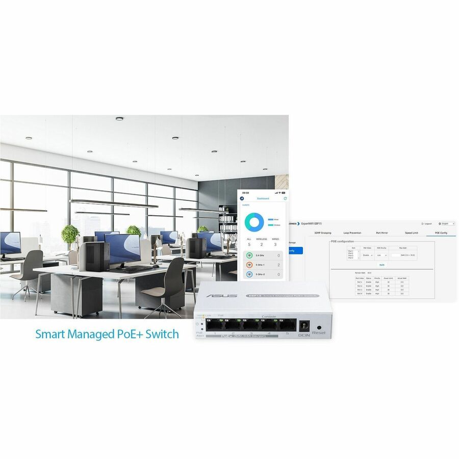 ASUS ExpertWiFi EBP15 5-Port GbESmart Managed PoE+ Switch | Your Business Network Expert Within Reach
