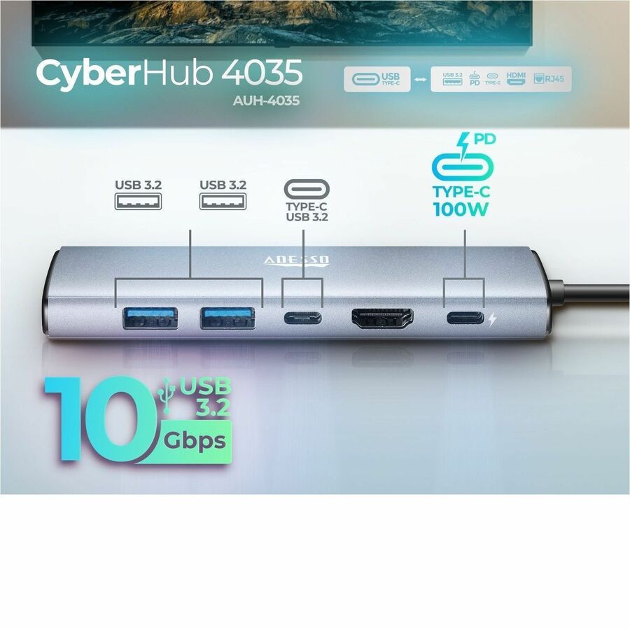 The CyberHub 4035 transforms a single USB Type-C port into a versatile 6-in-1 hub, featuring high-speed USB 3.2A Gen 2 ports, 4K HDMI, ultra-fast Ethernet, and passthrough power with Power Delivery charging. It gives you all the more ports to charge and expand your desktop and mobile experience.