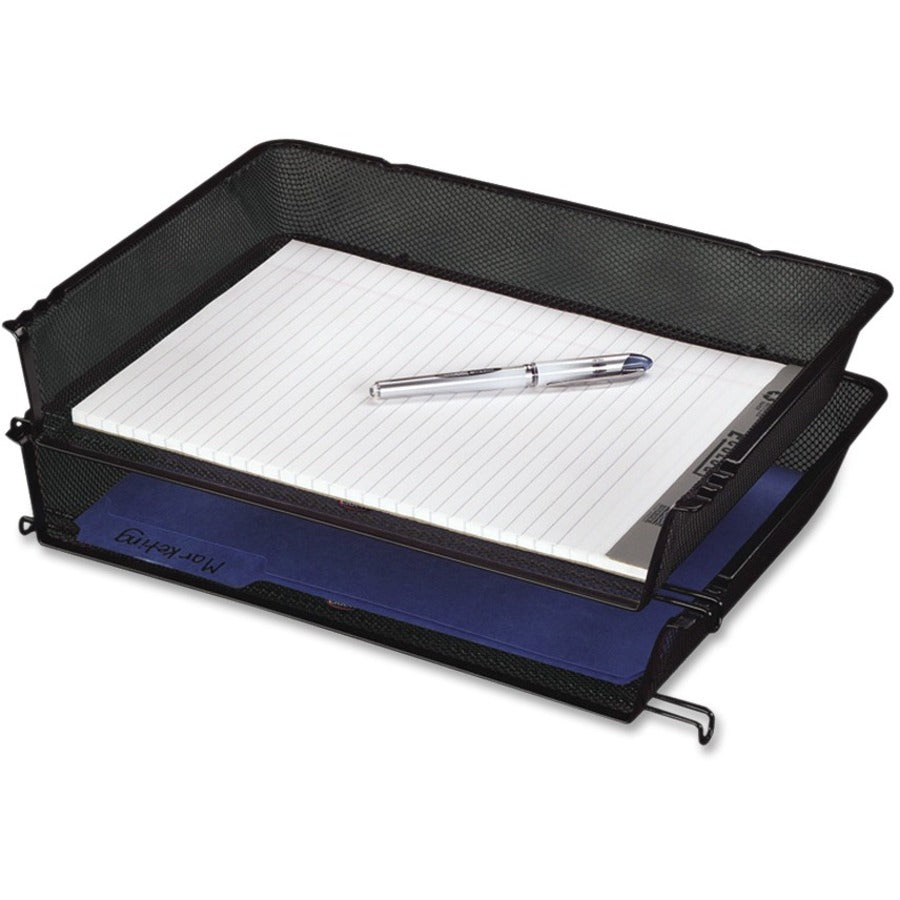 Stacking, side-loading letter tray offers the right user-friendly focus to ensure that all your paperwork is organized and all your supplies are at your fingertips. Made of durable rolled mesh steel, the unique criss-crossed design gives your work space a curb appeal all its own.
